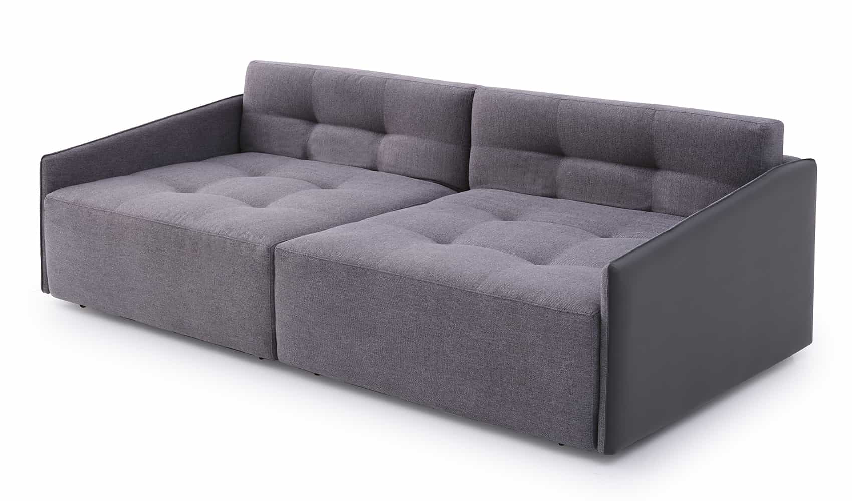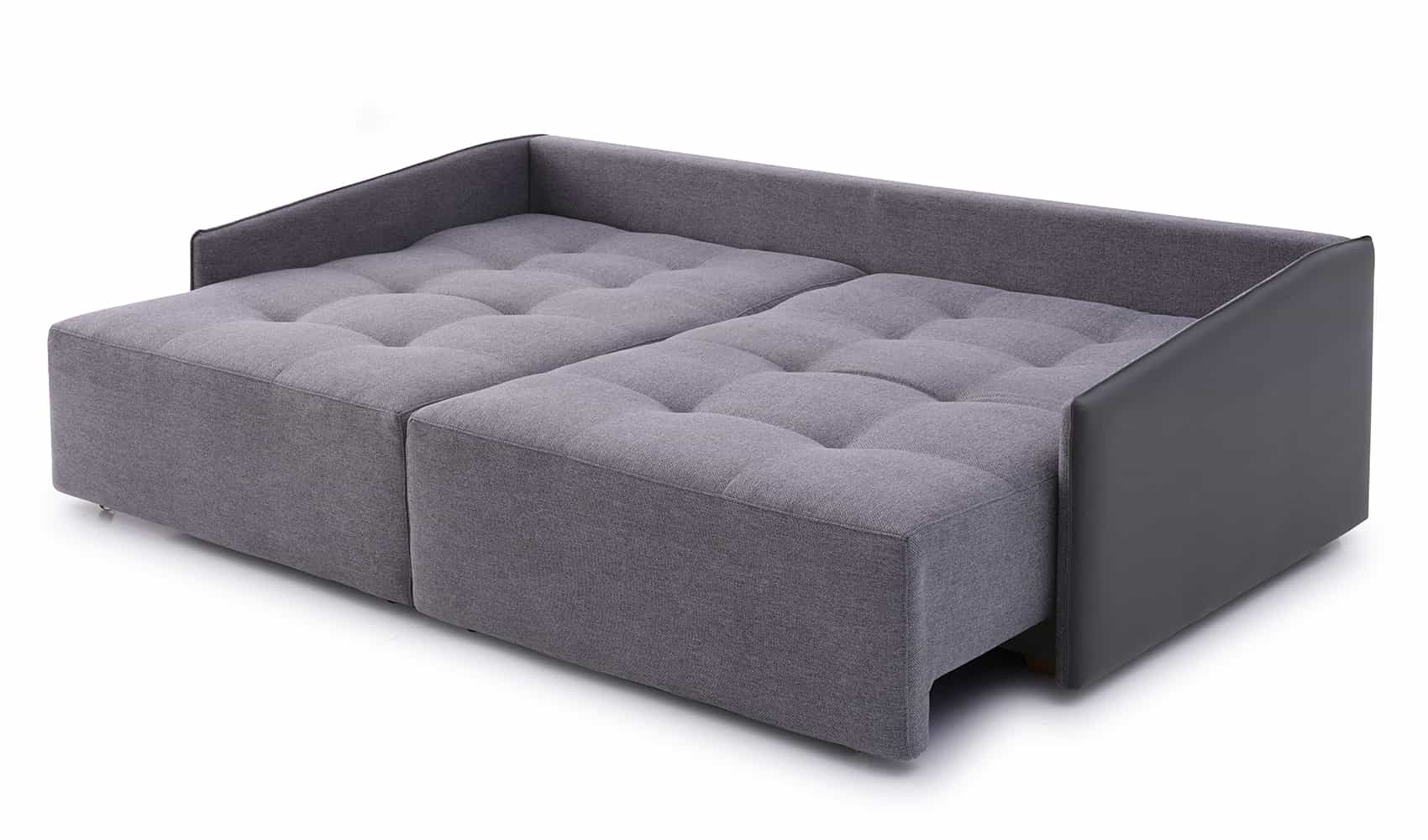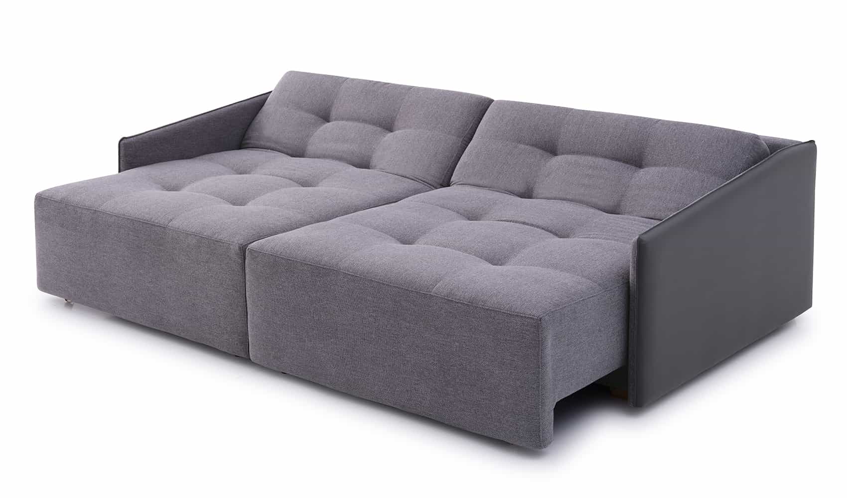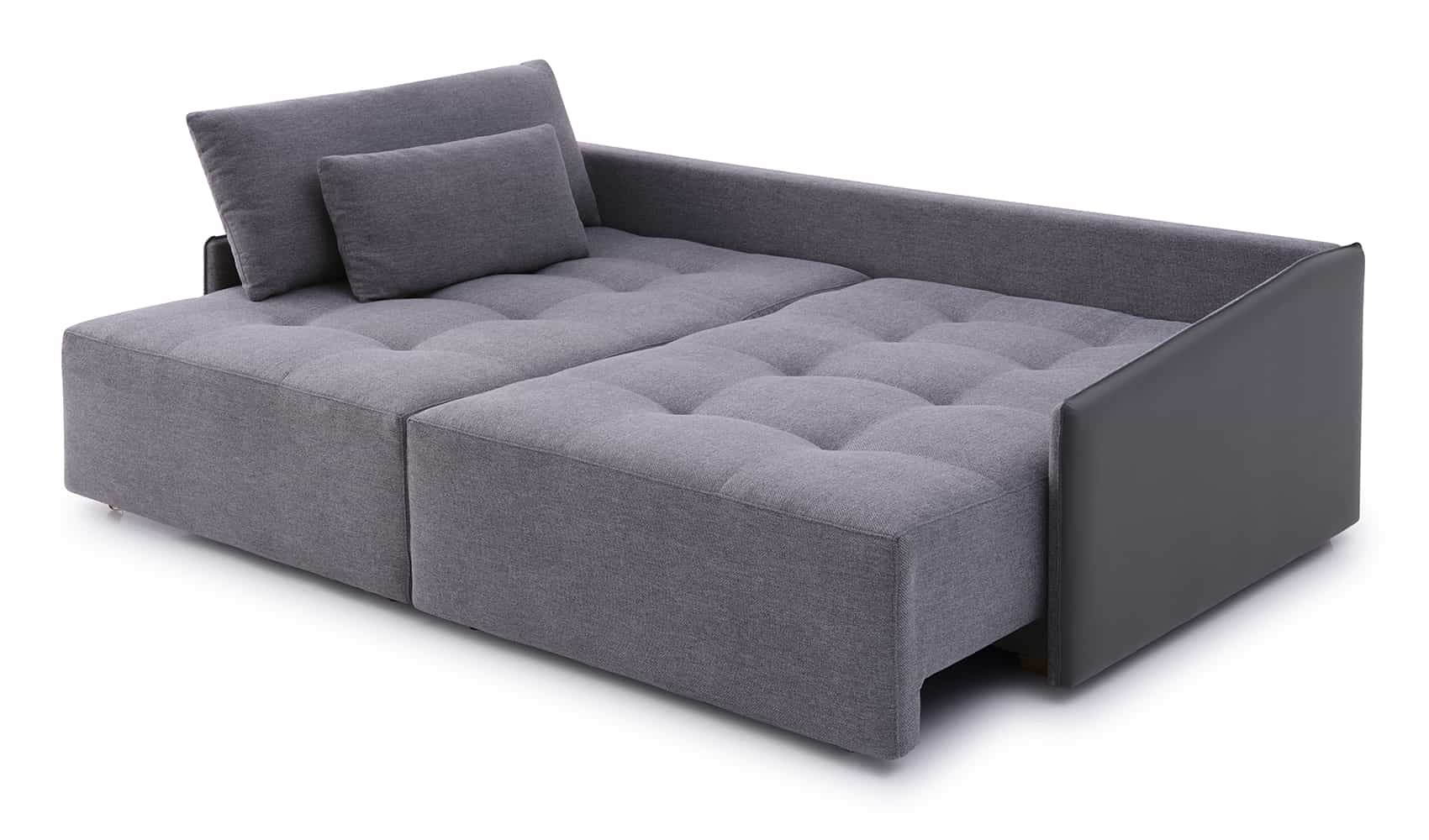 Seu design charmoso inclui braços fi nos e almofadas soltas para o uso diário, transformando-se em uma cama confortável quando aberto.