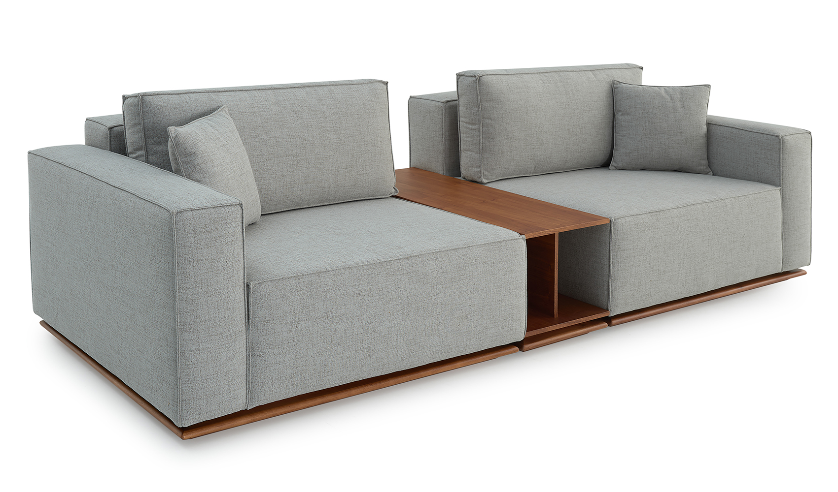 O Sofá Lione combina praticidade e charme em um design sofisticado. Com uma mesa de centro integrada em madeira situada entre as poltronas, ele oferece conveniência e um toque de elegância ao seu ambiente.